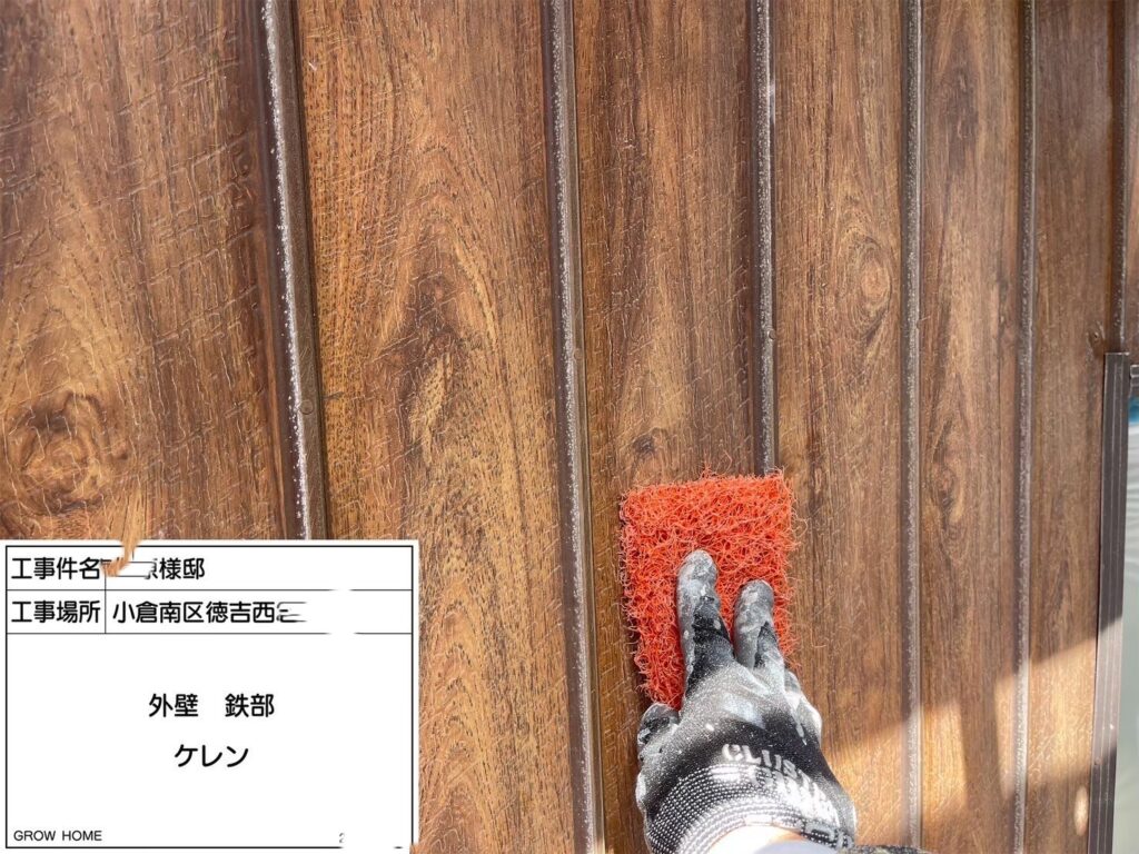塗膜が剥がれているため、触るとチョークのような粉が付きます。