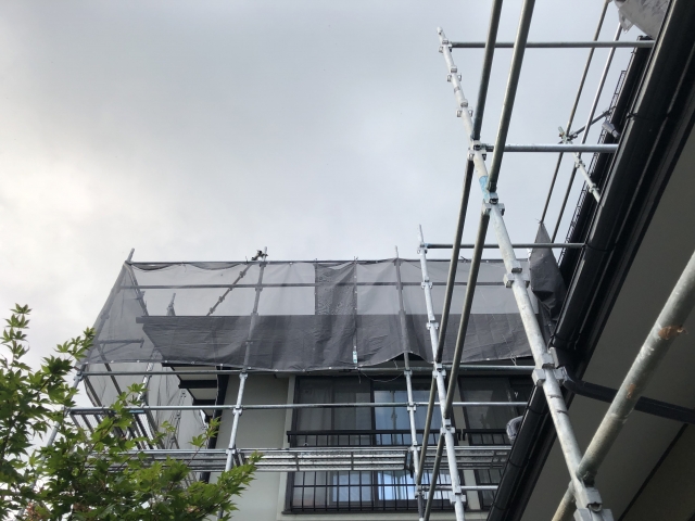 1.足場設置: 作業員の安全確保のために、足場を設置します。
