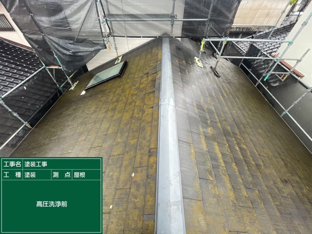 高圧洗浄では、屋根の上のコケ・カビ・汚れを一気に吹き飛ばします。