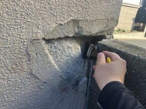 今回は小倉南区にて、ひび割れした外塀の左官補修を行いました。