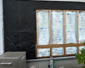 作業自体は1日で、冊子の撤去→下地・断熱材貼り→透湿防水シート貼り→ボード釘打ち