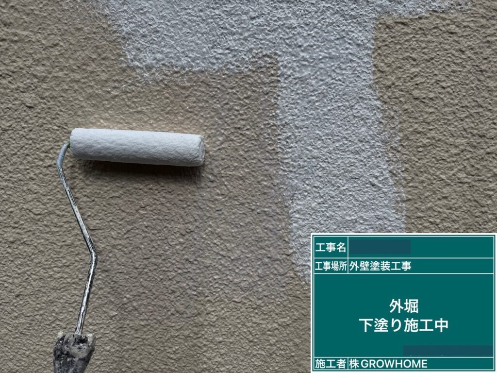 先にも記載しましたように、外壁の種類によって使い分ける必要があり、これを間違えると塗膜の剥がれや膨らみ等の不具合を発生してしまいます。外壁の状態(劣化具合)によっては下塗りを二回塗ることもあり、下塗り材の種類と回数については現地調査の時に判断させていただきます。
