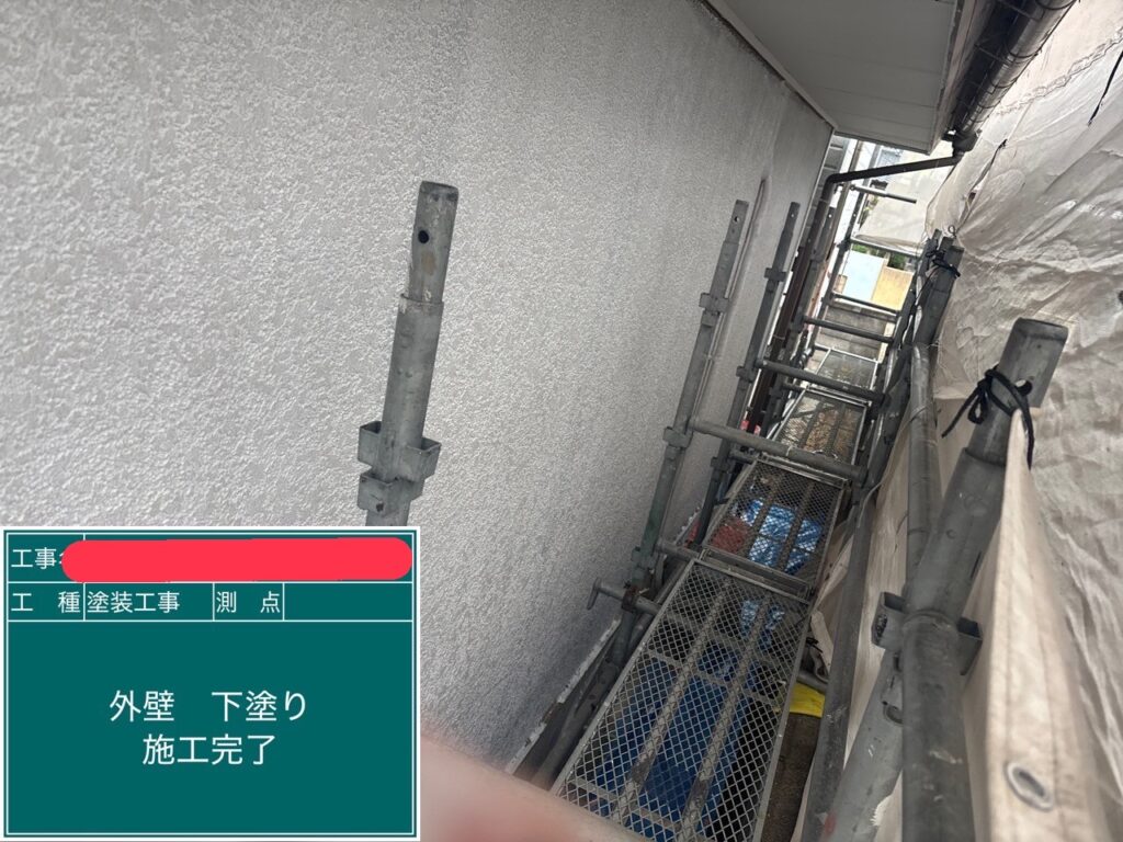 これで下塗り作業が完了し、次は中塗り・上塗りへと進んでいきます。塗り重ねるごとに外壁の表情が変わり、完成に近づいていく様子を見るのはとても楽しみです。お客様にも安心していただけるよう、引き続き丁寧な作業を心がけていきます。