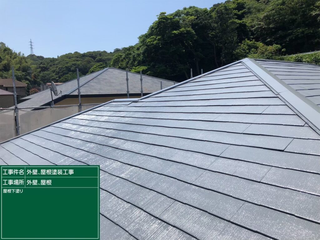 そして下塗りには、屋根材にしっかり密着する専用のシーラーを塗布します。コロニアル屋根は経年で塗膜が劣化しやすく、吸い込みも多いため、下塗りでしっかりと吸い込みを止めることが大切です。ここを丁寧に行うことで、上塗り塗料の性能が最大限発揮されます。