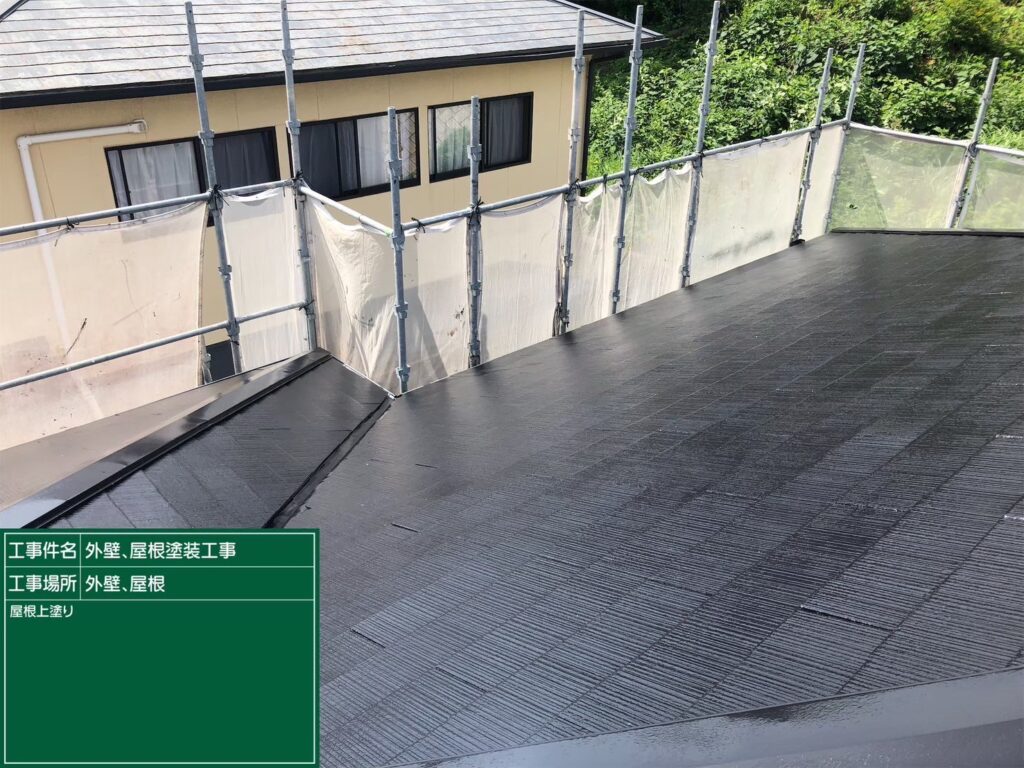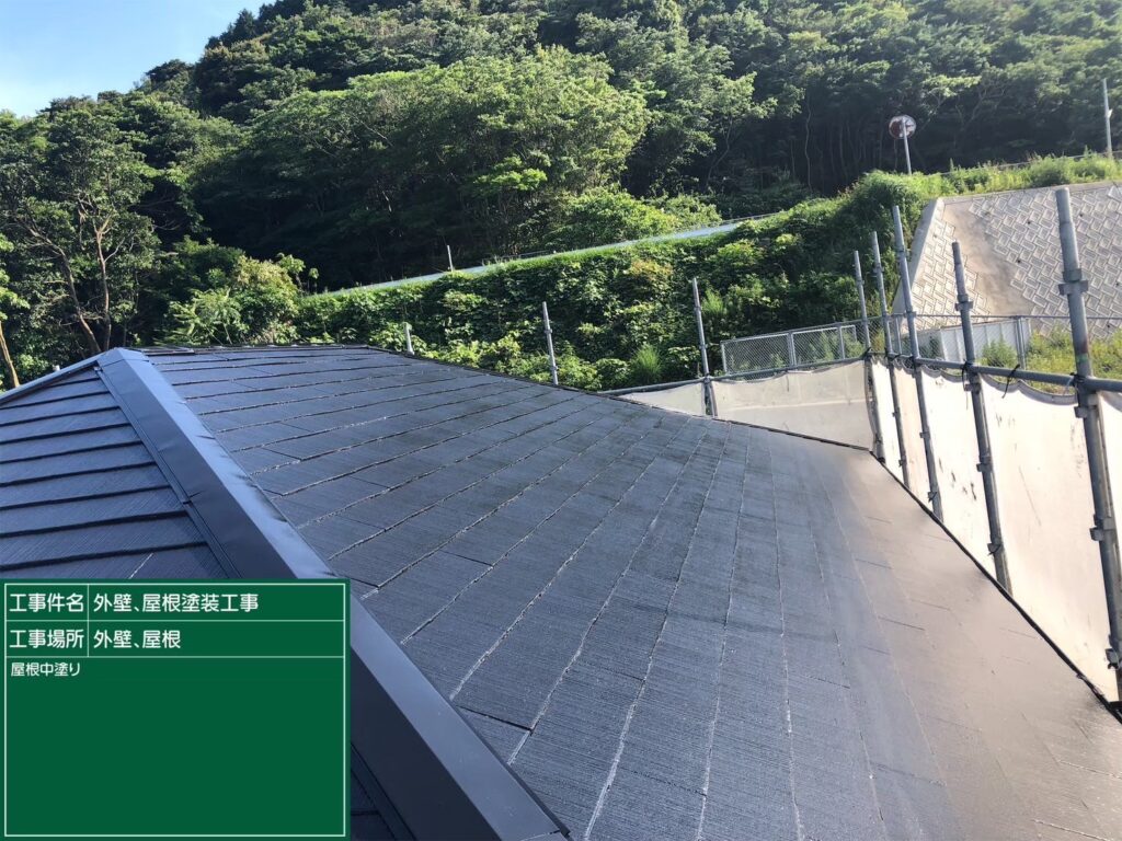 塗装は中塗り→上塗りの二回塗り工程で、ムラが出ないよう屋根全体に均一に仕上げていきます。塗り重ねるたびに色の深みが増し、屋根が生き返るように美しく仕上がっていきます。