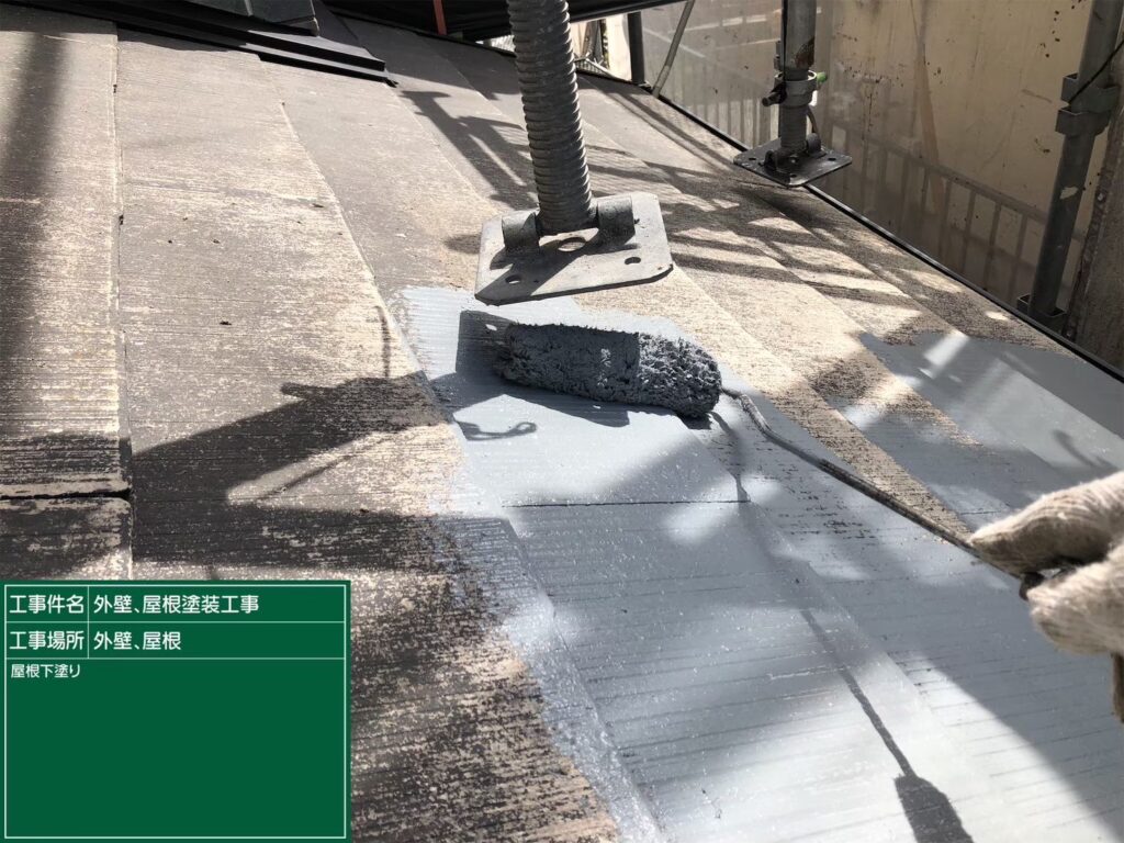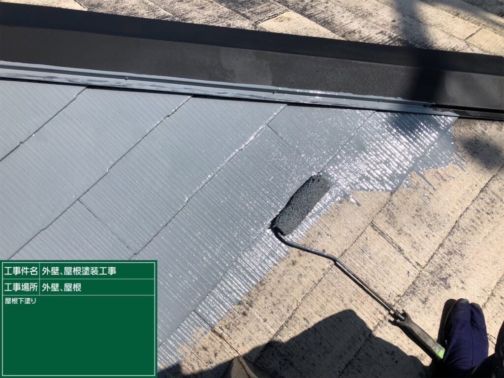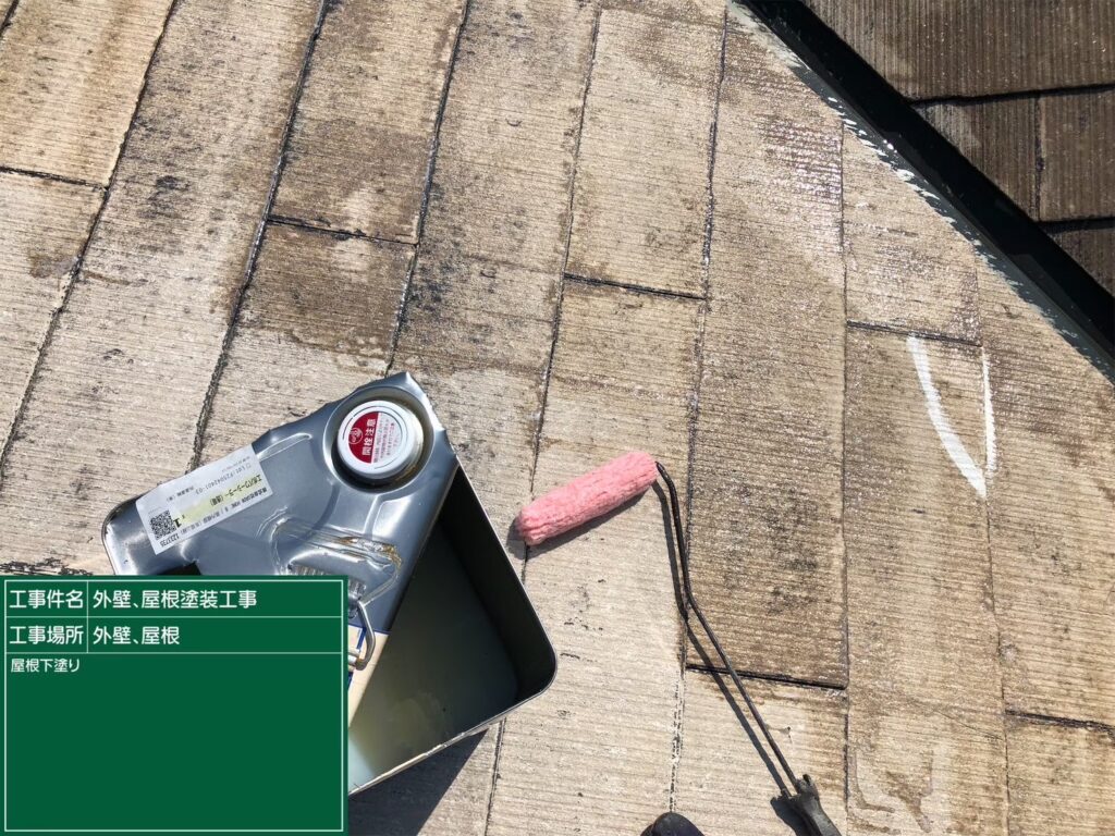 そして下塗りには、屋根材にしっかり密着する専用のシーラーを塗布します。コロニアル屋根は経年で塗膜が劣化しやすく、吸い込みも多いため、下塗りでしっかりと吸い込みを止めることが大切です。ここを丁寧に行うことで、上塗り塗料の性能が最大限発揮されます。