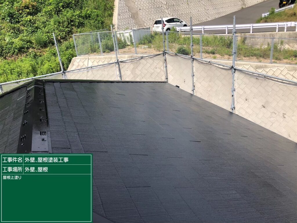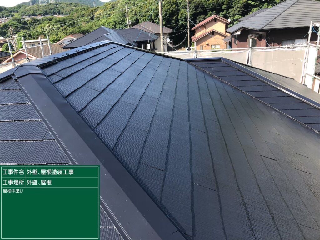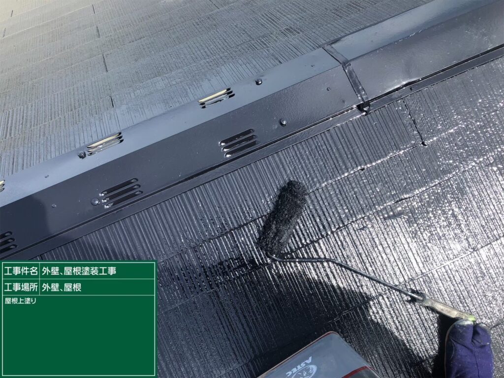 塗装は中塗り→上塗りの二回塗り工程で、ムラが出ないよう屋根全体に均一に仕上げていきます。塗り重ねるたびに色の深みが増し、屋根が生き返るように美しく仕上がっていきます。
