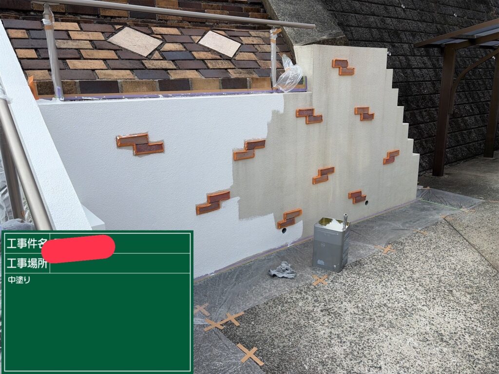 下塗りが乾いたら、いよいよお施主様が選んだカラーでの「中塗り」です。