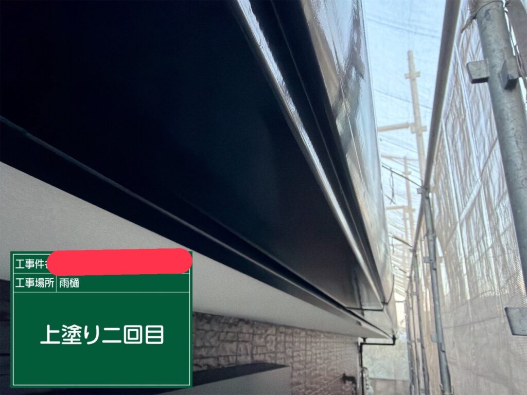 外壁本体が仕上がり、今日は家の寿命を左右する「付帯部(鉄部・塩ビ部)」の集中攻撃です。