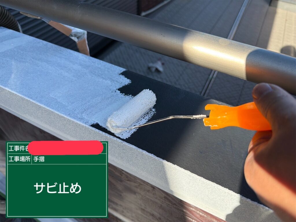 細かい隙間や角の部分は、毛先の短い刷毛に持ち替えて、奥の奥まで塗料を流し込む。この白い下地が、未来のサビを根元から封じ込める「防波堤」になります。