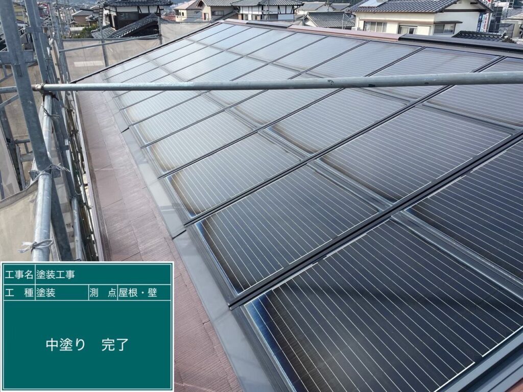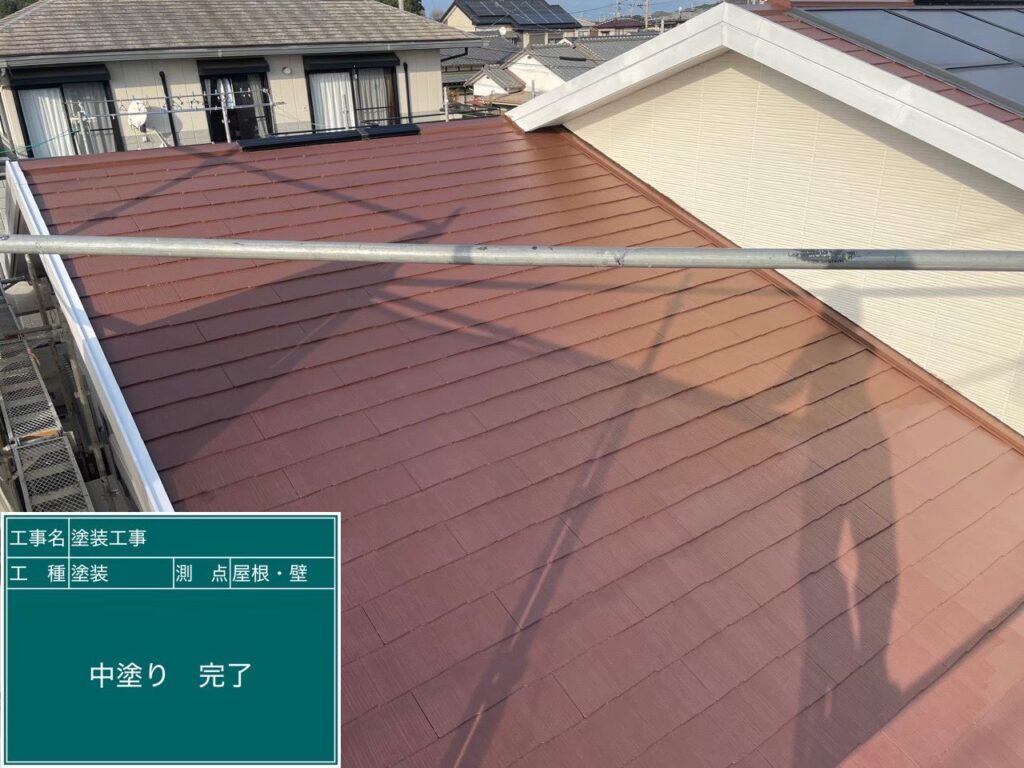 下塗りが乾いたら、お施主様選定の遮熱塗料で「中塗り」に入ります。