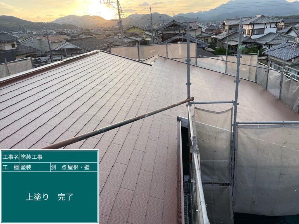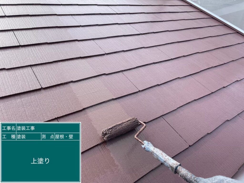 屋根の上は照り返しが強く、足腰にもかなりの負担がかかりますが、塗り上がった屋根が太陽の下でピカッと輝くのを見ると、この仕事の醍醐味を感じます。