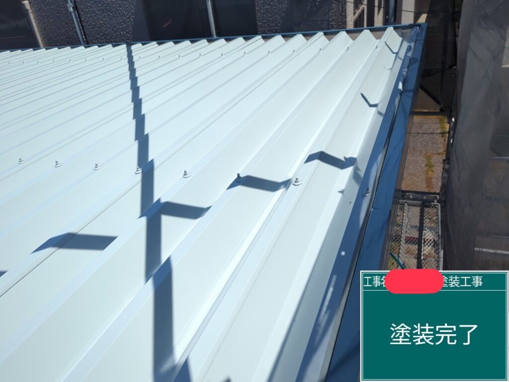 折板屋根はボルトキャップの隙間や、折り重なっている部分など、目に見えにくい場所に湿気が溜まりやすい構造をしています。そうした箇所こそ、最後に自分の目で一周まわってチェックし、塗り残しがないか入念に確認して本日の作業は完了です。