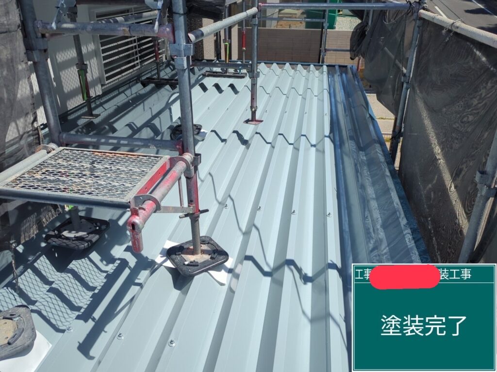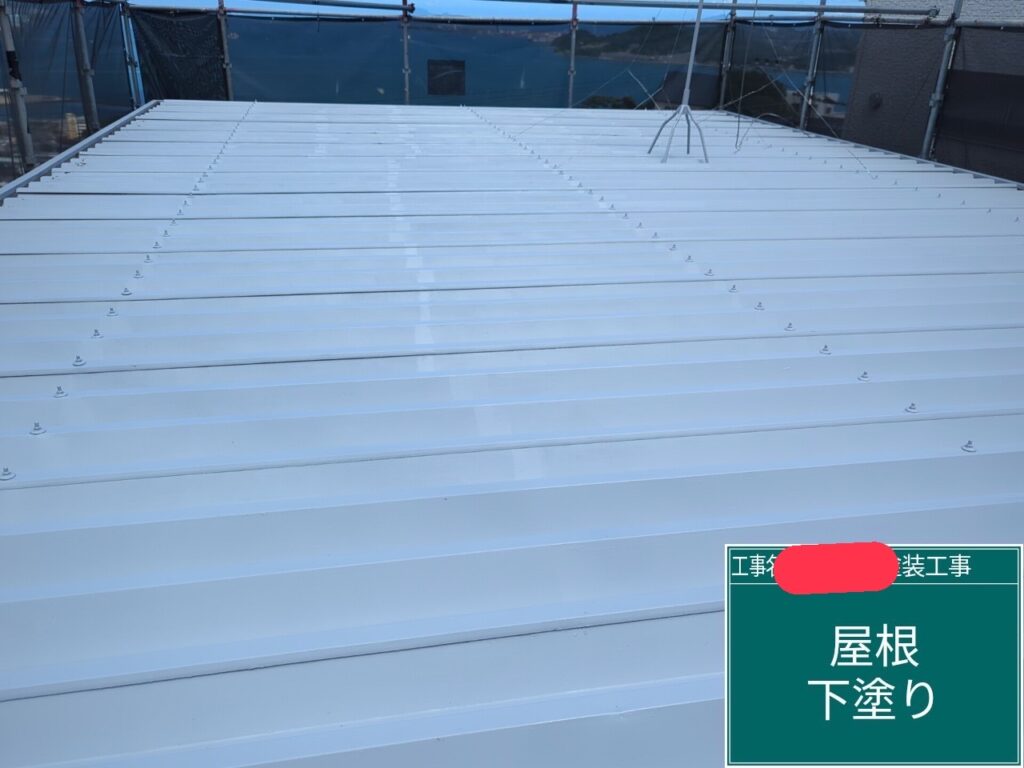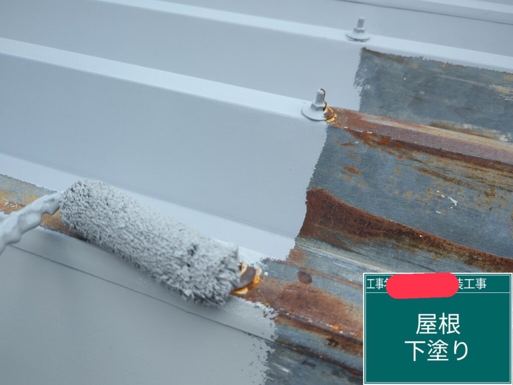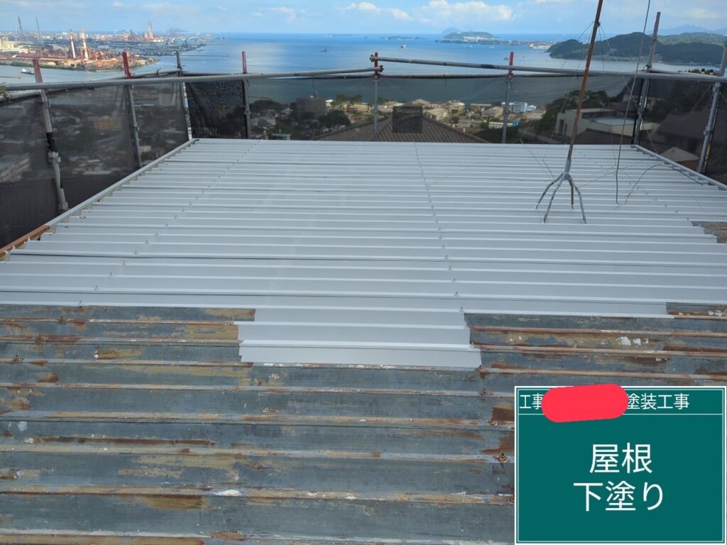 宗像市の現場で下地処理後の折半屋根を塗装をしました!