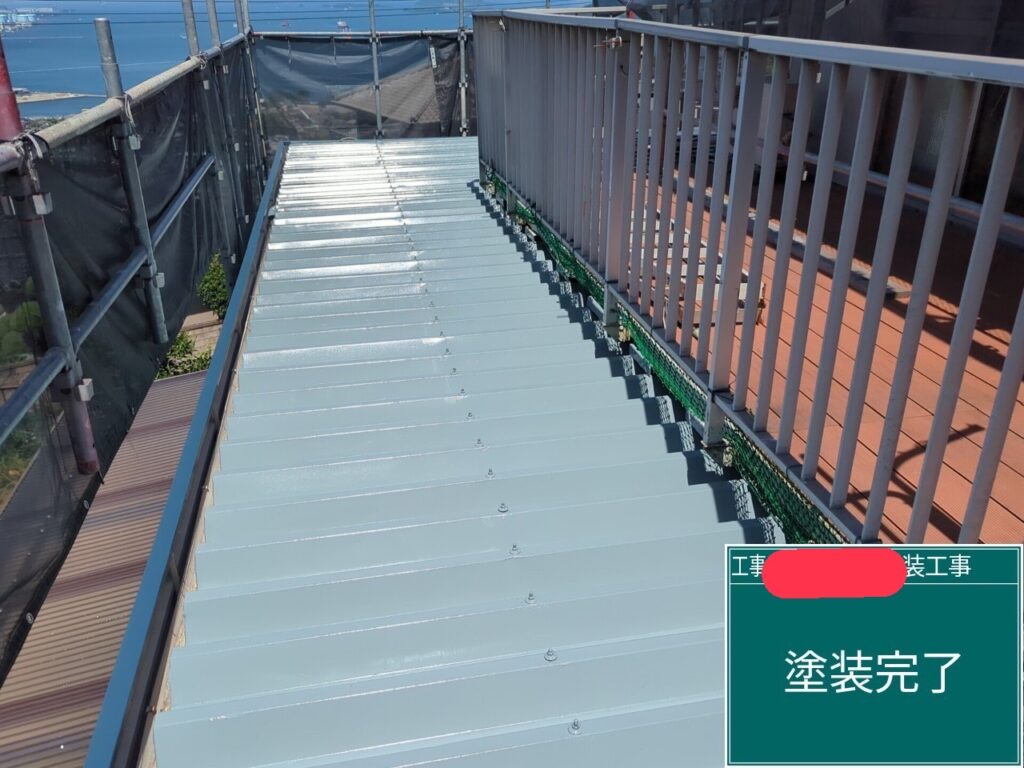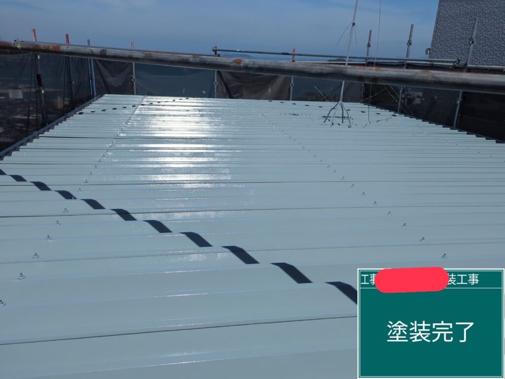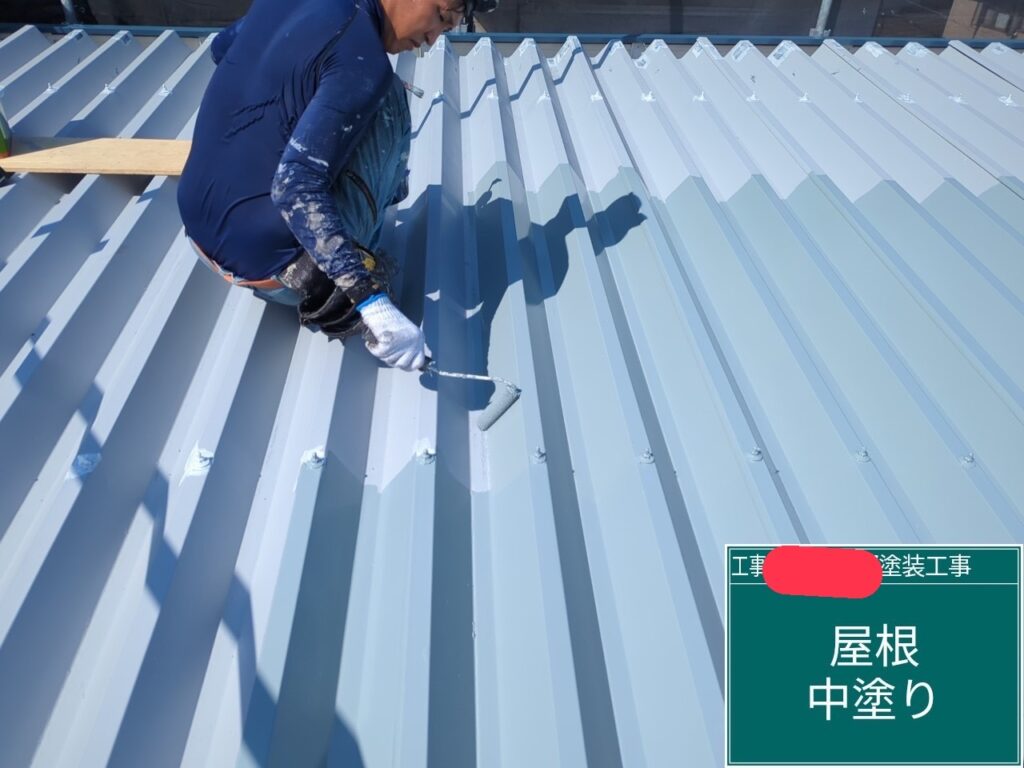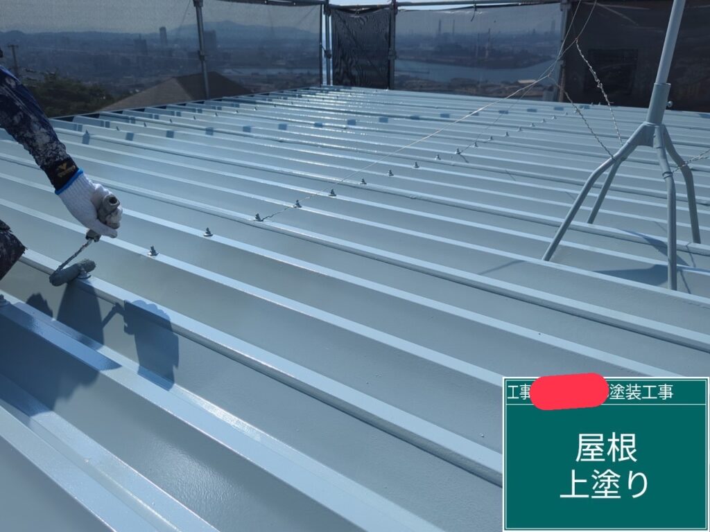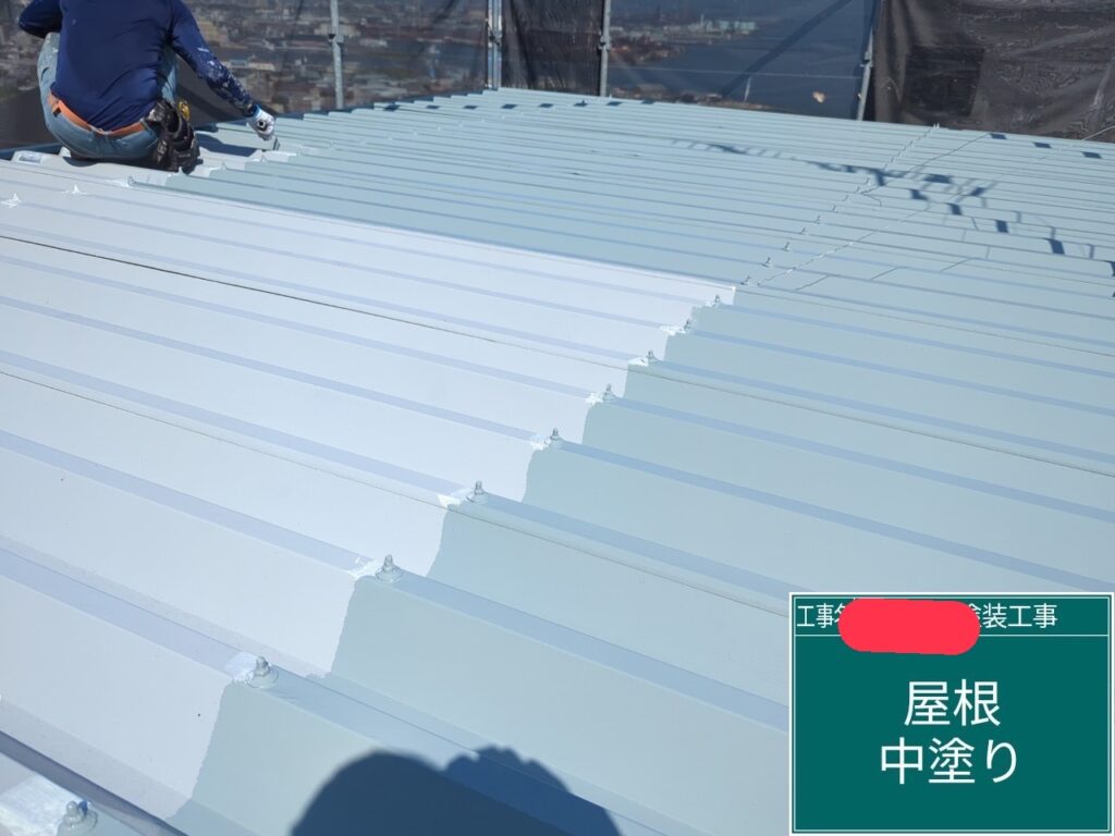 前回、ケレン機と剥離剤で徹底的に古い塗膜を落とした折板屋根。本日は、いよいよ新しい命を吹き込む「塗装工程」の様子をレポートします。