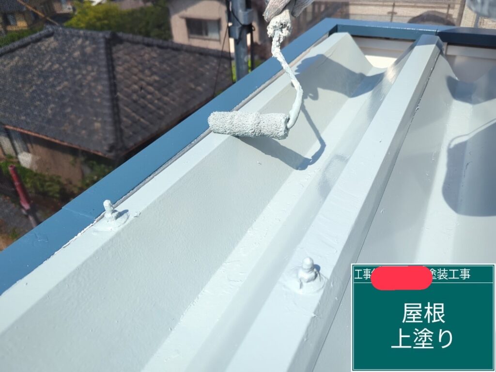ここからはお客様が選ばれた仕上がりの色を塗っていくのですが、単に色をつけるだけではありません。ここでしっかりと塗膜の「厚み」を作ることで、雨風や紫外線に負けない強い屋根になります。