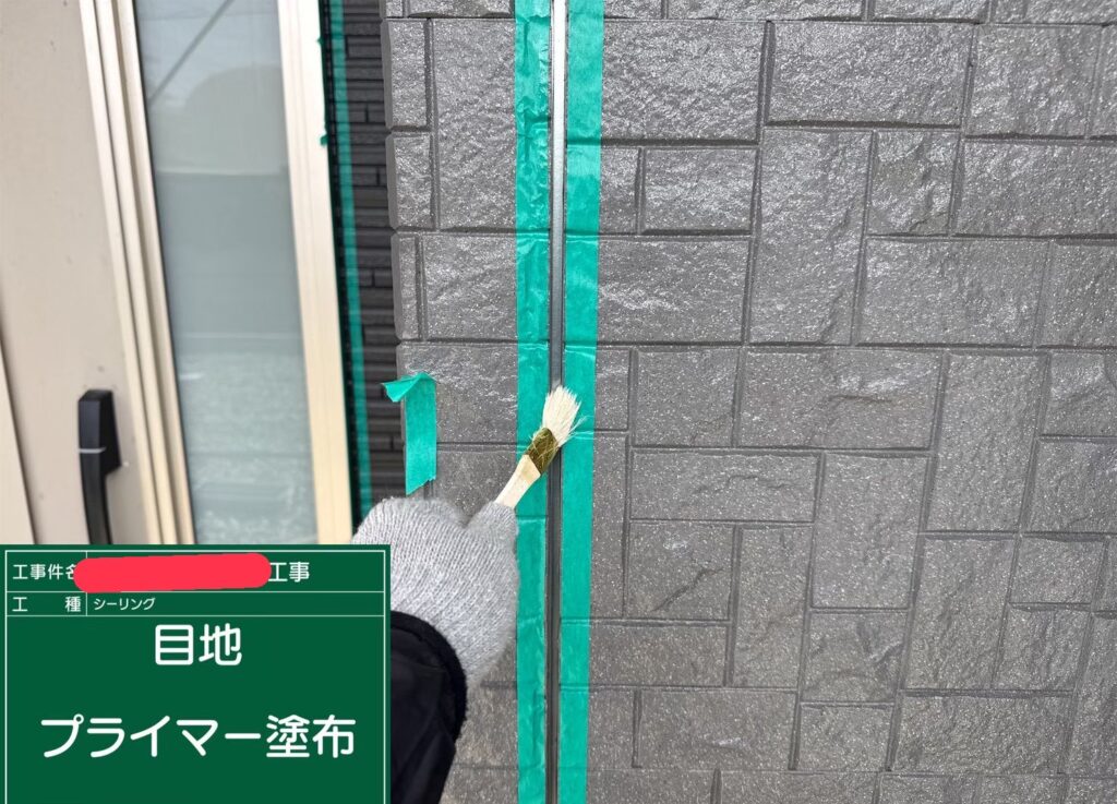 これは、外壁材と新しいコーキング剤を強力に密着させるための接着剤の役割を果たします。塗りムラがあると、数年後にコーキングが剥がれてくる原因になるため、奥までしっかり浸透させるようにハケを走らせます。