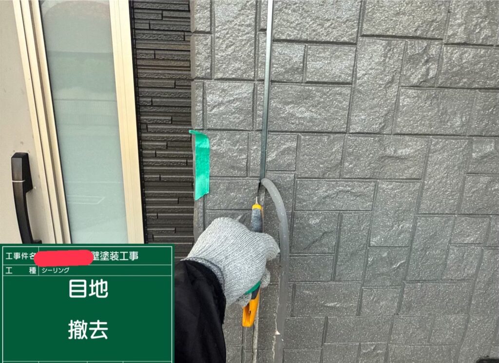 まずは、新築時から数十年頑張ってくれた古いコーキングを剥がしていく作業から。