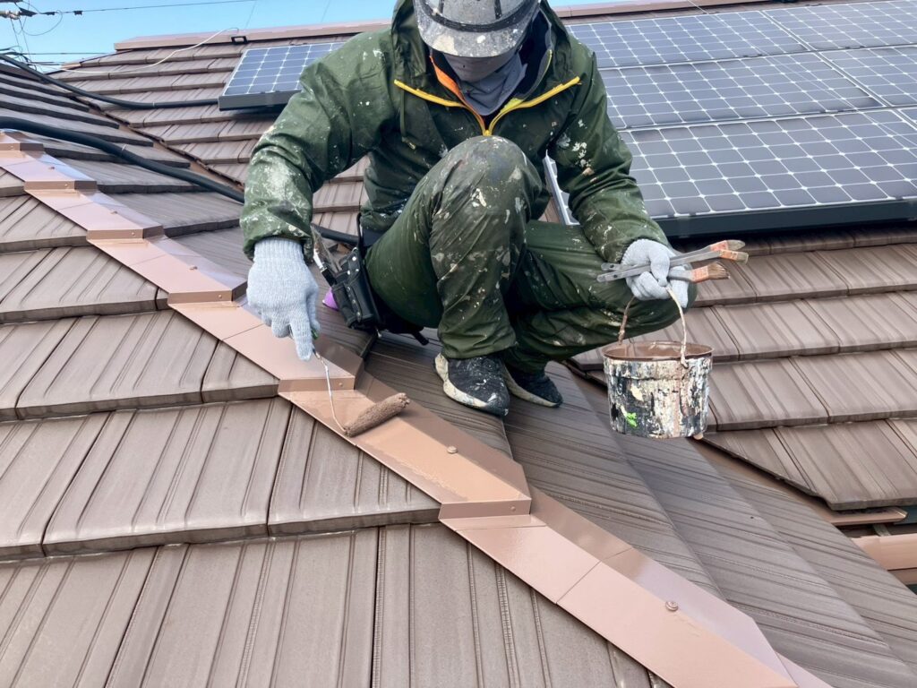 小倉南区にて塗装不要な陶器瓦の棟板金塗装を行いました。