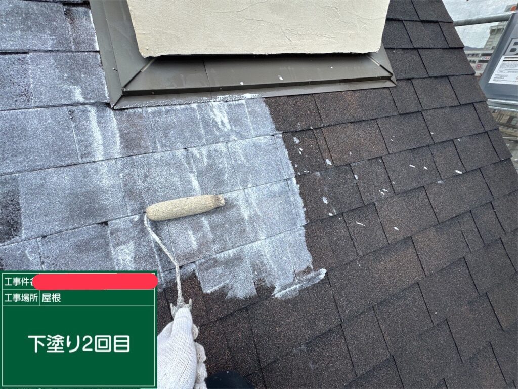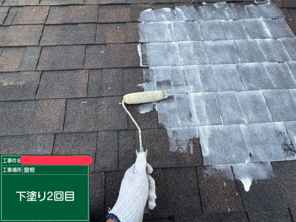 アスファルトシングルの塗装は、一般的なスレート屋根よりも塗料の消費量が多く、手間もかかります。しかし、こうして工程を一つずつ確実に踏むことで、素材の柔らかさを保ちつつ、高い防水性能を取り戻すことができます。