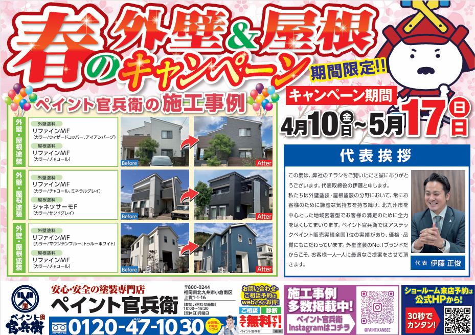 期間限定!春の外壁・屋根塗装キャンペーン開始のお知らせ!【北九州市外壁・屋根塗装ペイント官兵衛】