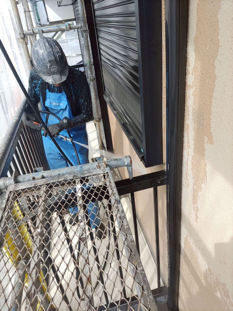 プライマーを塗布していきます。シーリング材の密着をよくする為です。