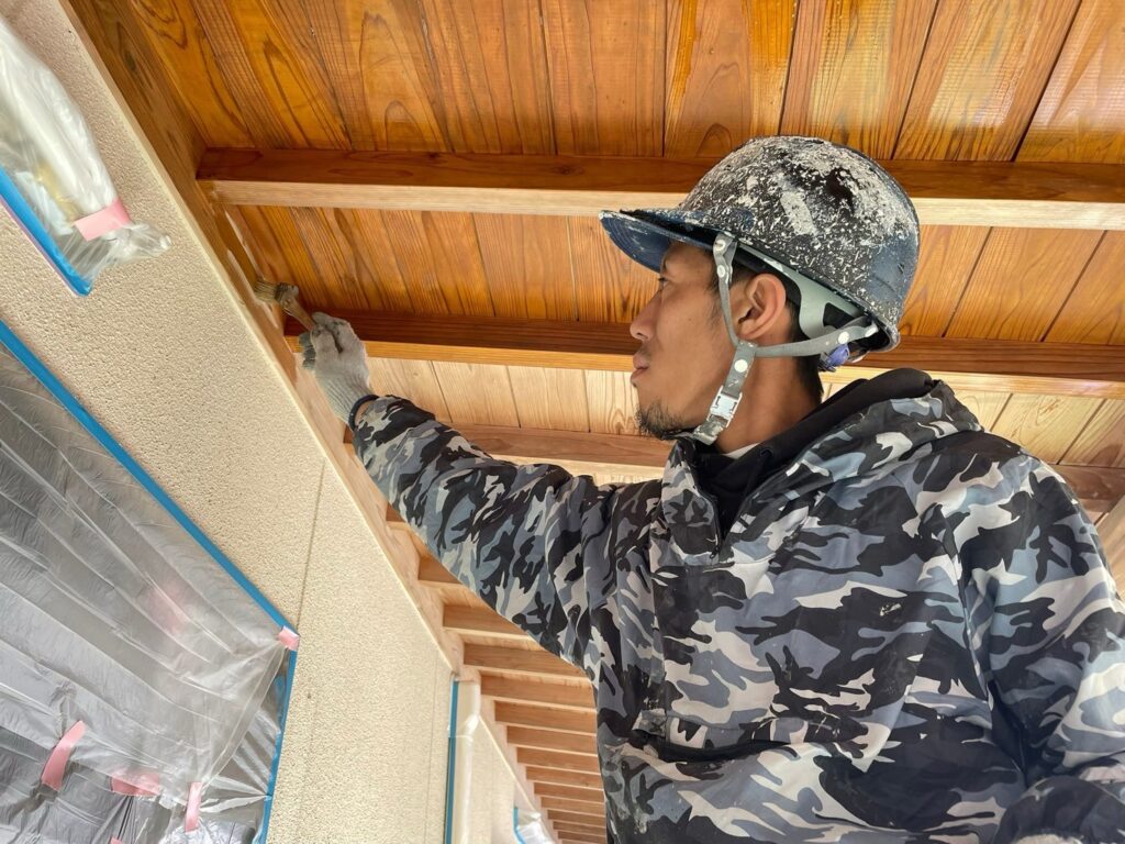 - 軒天 上塗り2回目上塗り2回目を行っていきます。