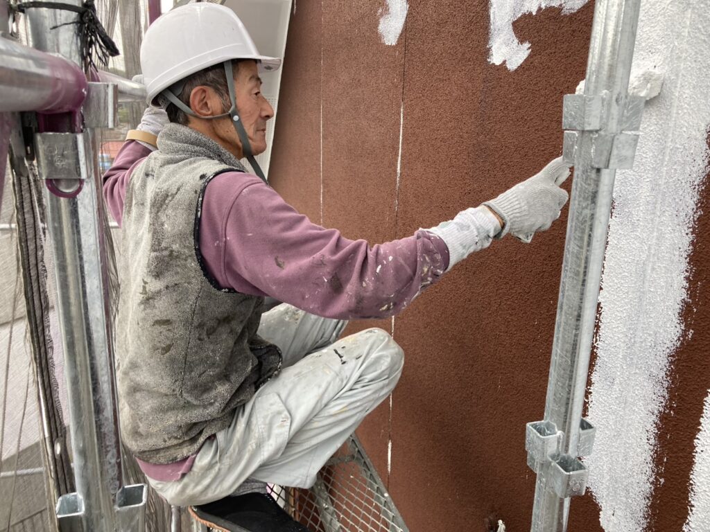 シーリングを充填し、ヘラで表面を均していき養生を撤去します。