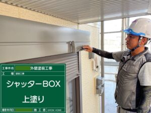 シャッターBOXのケレン作業を行っていきます。シャッターBOX サビ止め