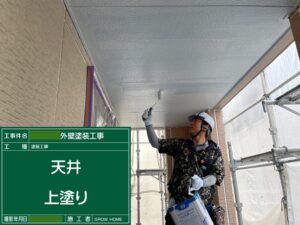 上塗り1回目を行っていきます。外壁 上塗り1回目