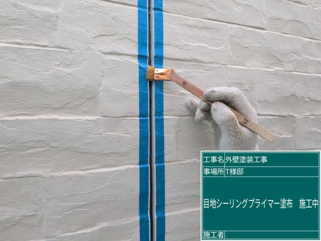 プライマーを塗布していきます。シーリング材の密着をよくする為です。目地 コーキング充填