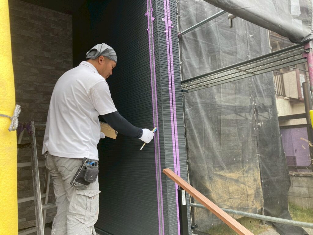 プライマーを塗布していきます。シーリング材の密着をよくする為です。