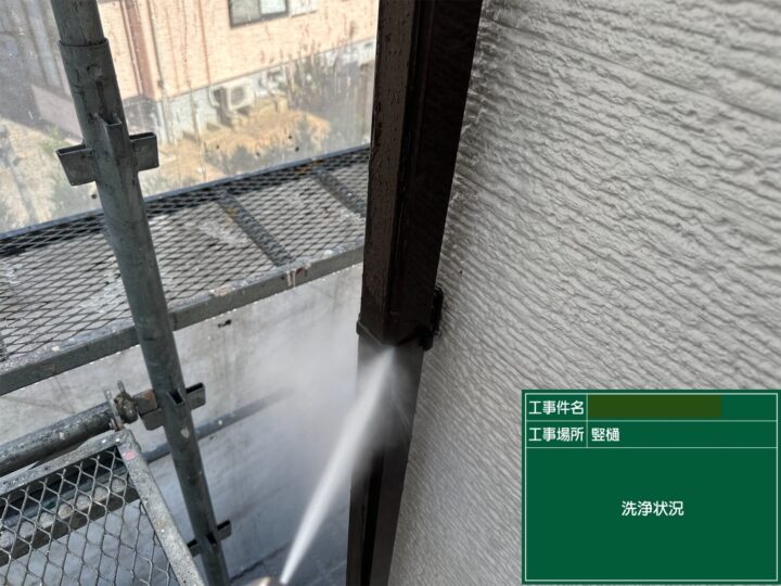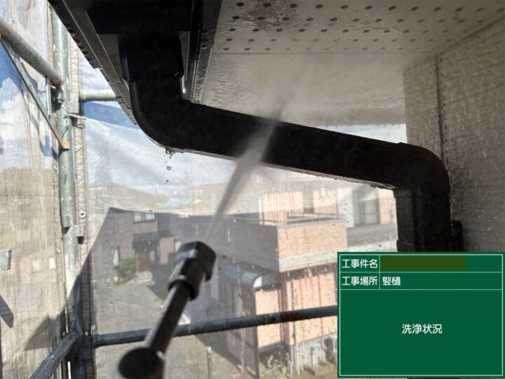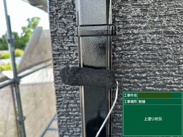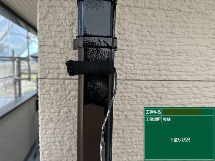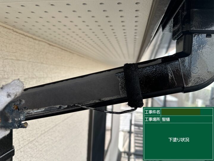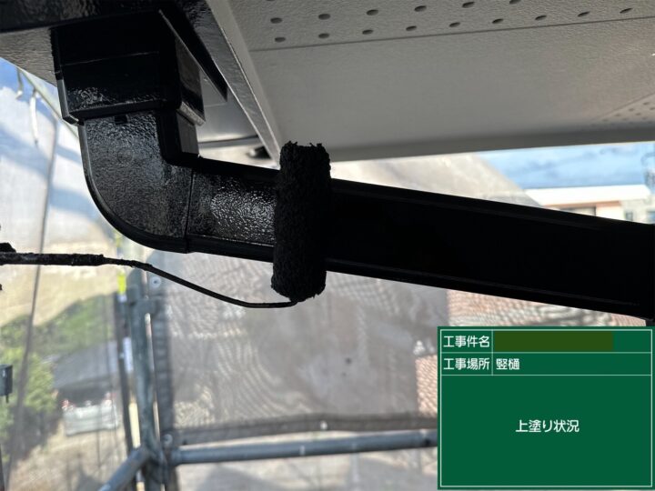 下塗り乾燥後、上塗りを行っていきます。竪樋 下塗り