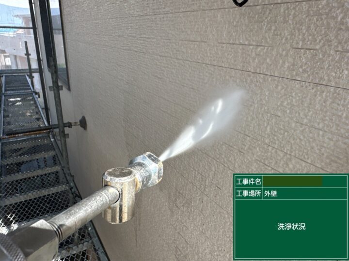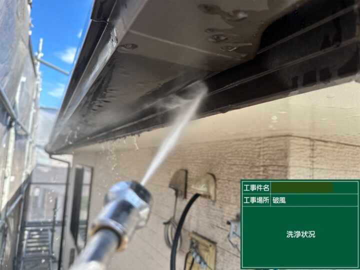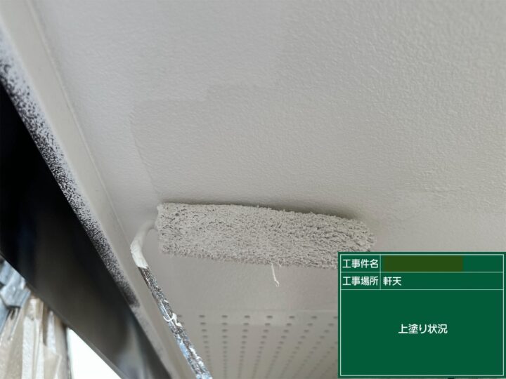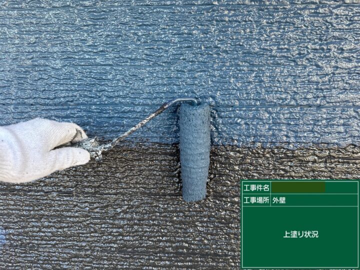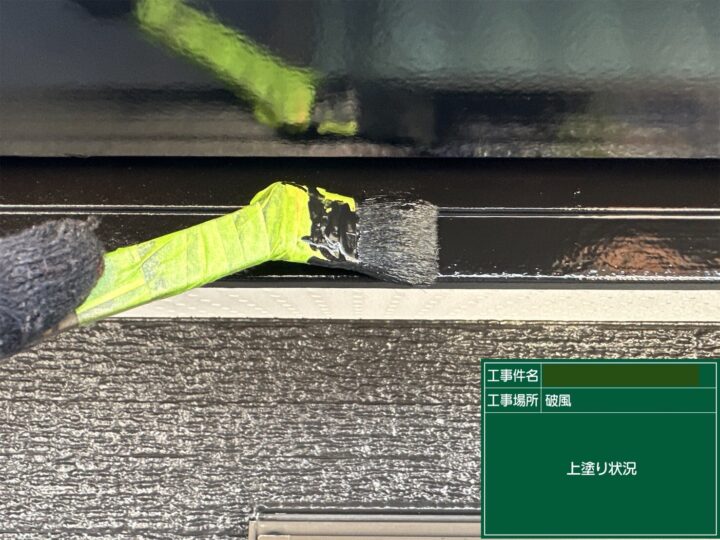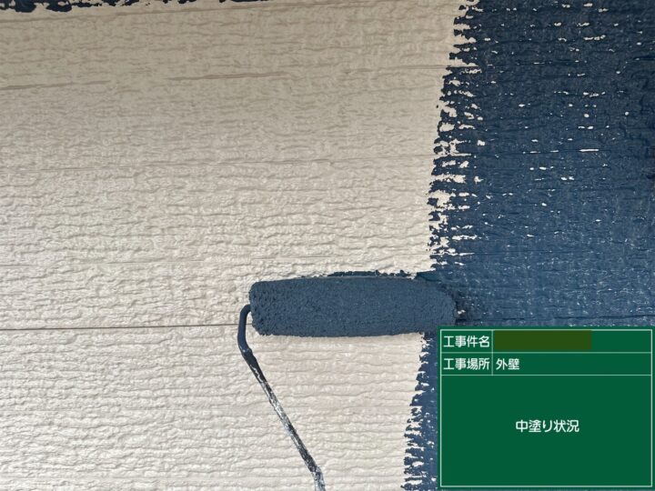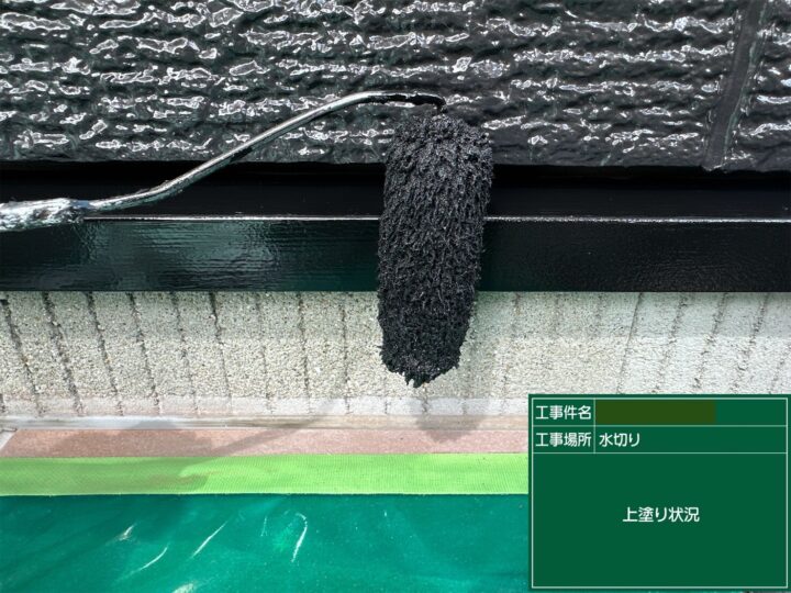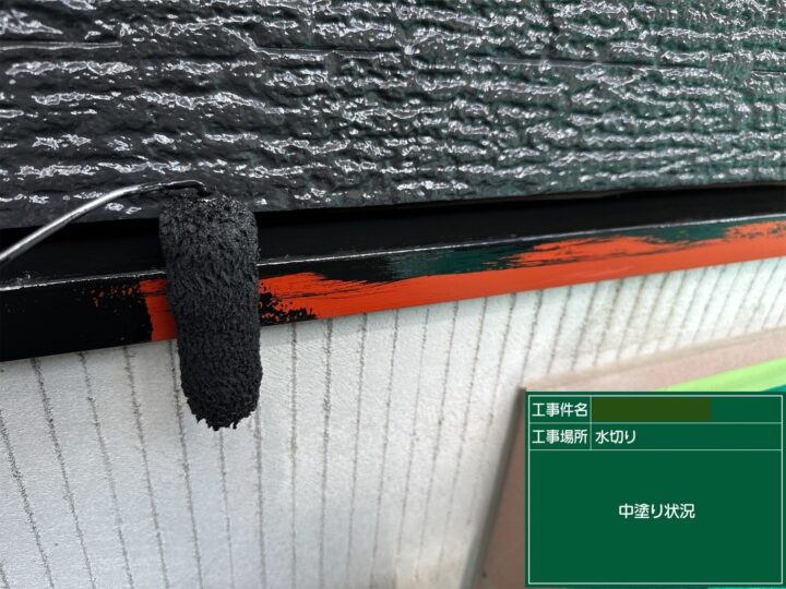 中塗り乾燥後、上塗りを行っていきます。水切り ケレン作業