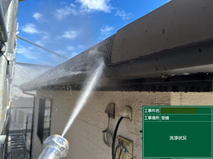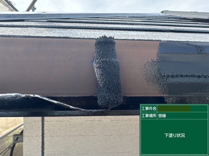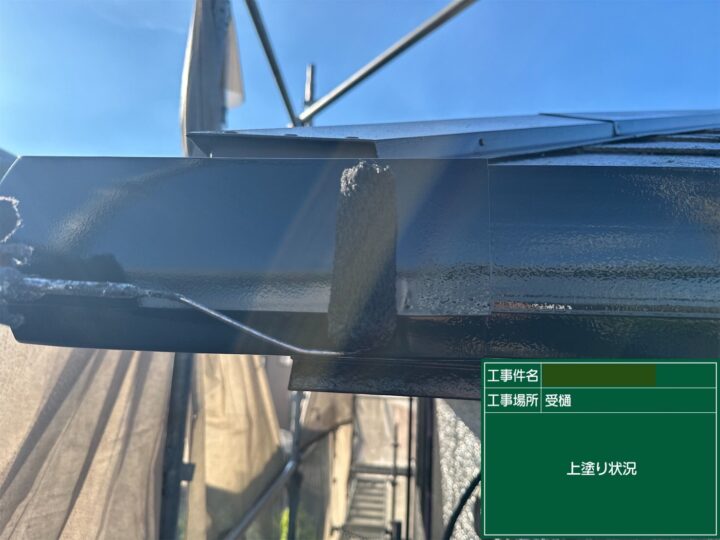 下塗り乾燥後、上塗りを行っていきます。受樋 下塗り