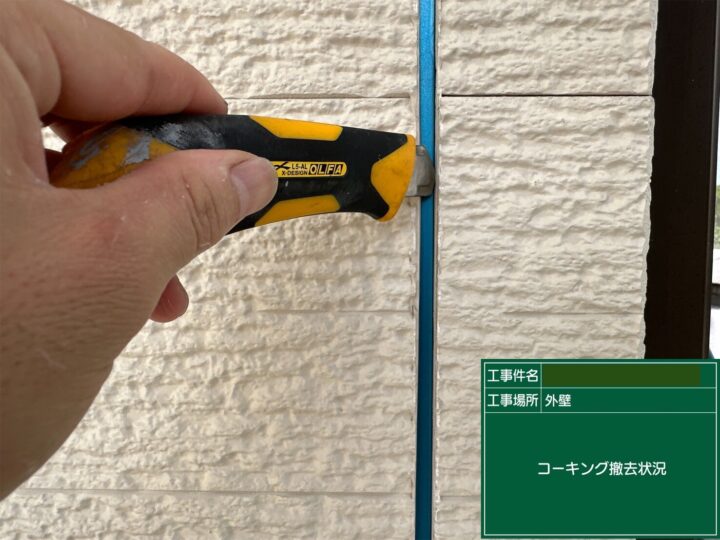 まず劣化したコーキングを除去します。目地 コーキングプライマー塗布
