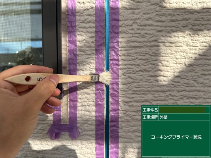 プライマー(下地処理剤)を塗布しコーキングの密着を良くします。目地 コーキング充填